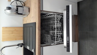 Łazienka z kabiną prysznicową, WC i pralką.
